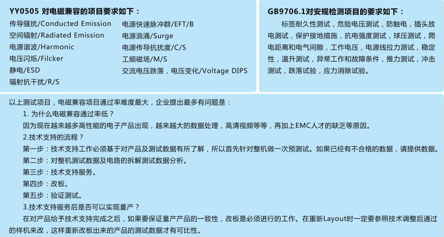 首先大家需要先認識到YY0505-2012對電磁兼容項目是哪些,請參考以下明細: